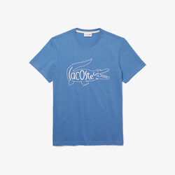 تي شيرت قطن بفتحة رقبة مستديرة للرجال وتطريز التمساح