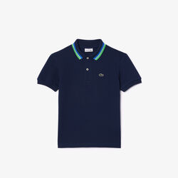 بولو للأولاد من لاكوست ذو ياقة ثلاثية الألوان مصنوع من القطن بيتي بيكيه