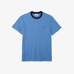 Men's Contrast Crew Neck Loose Fit Textured Cotton T-shirt